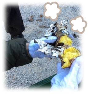 寒い冬を乗り越えるべく、年明けに焼きいも大会を開催!落ち葉を集め、さつまいもを丁寧に洗って新聞紙とアルミホイルでくるみ、みんなで準備をして行いました。